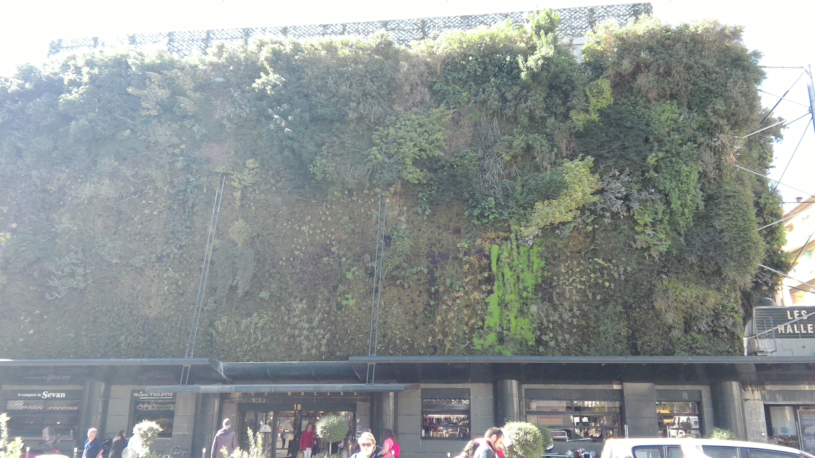 En dehors de la façade disposant d’un mur végétal, le bâtiment n’est pas joli. Il y a les halles au Rdc et un parking en étages. Je pense que l’ensemble devrait être habillé soit en végétal, soit en trompe l’œil sur toutes les façades. Par contre les halles abritent de nombreux magasins avec des produits variés et de qualité mais il y a beaucoup de monde, mieux vaut trouver l’horaire le moins chargé pour faire ses courses.