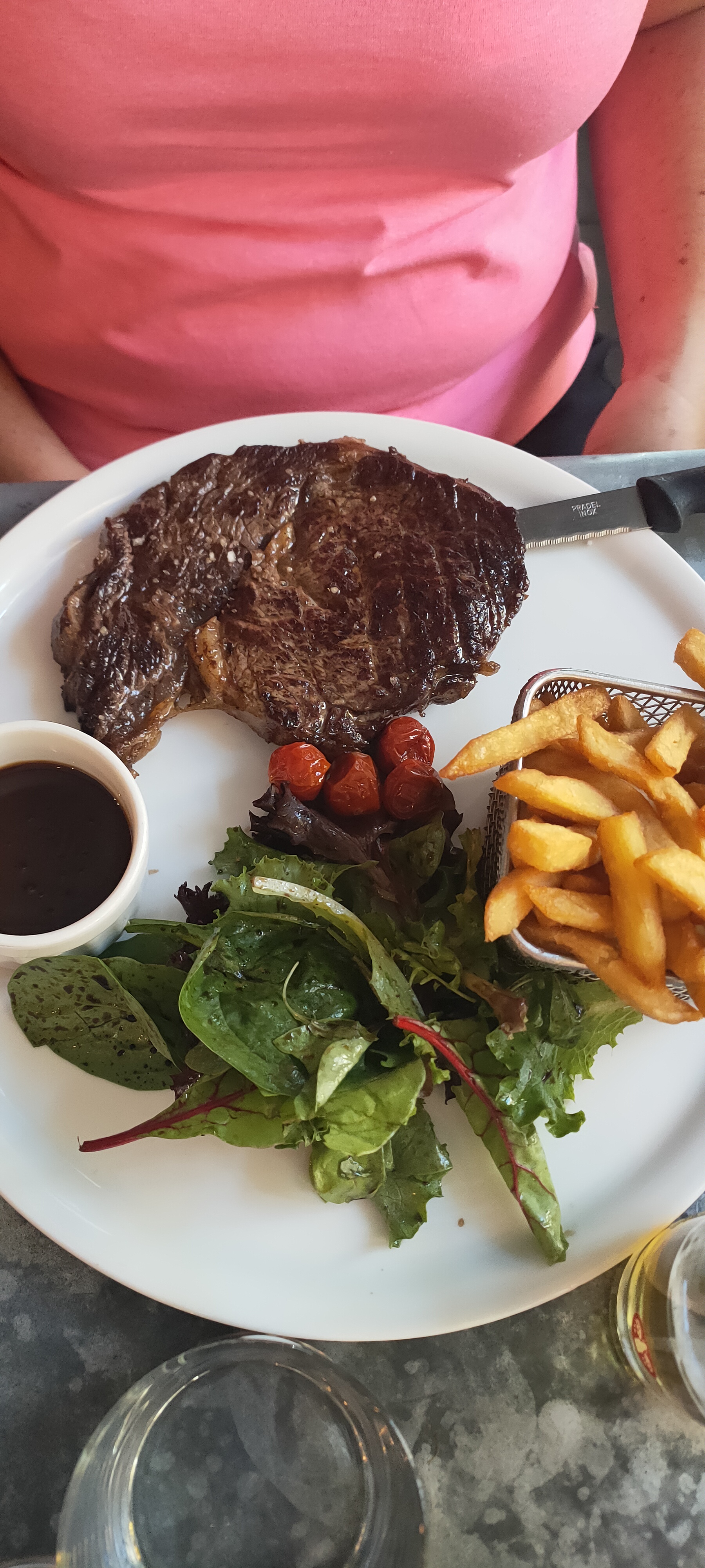 Posté le 09/09/2022 à 14:36" Bon restaurant bistrot au centre d'Avignon, nous étions deux, gentillesse et courtoisie nous ont accueillis à 13h30 (inhabituel pour le quartier et ses usages) avec un personnel agréable et courtois nous avons pris quelques propositions intéressantes du jour, comme des entrées pour exemple un pâté de foie gras de canard sur croûte de pain provençal, et j'ai eu aussi un bon pâté de saumon et thon sur croûte de pain provençal, en plat du jour un magret de canette caramélisé accompagné de riz parfumé aux herbes, et servi avec salade habillée de vin Negrette au vinaigre balsamique, tandis que l'autre plat était une entrecôte de bœuf (pas particulièrement savoureuse et même pas cuite saignante comme demandé) mais dans l'ensemble correcte dans l'ensemble et également servie avec des pommes de terre au four et une salade au vin Negrette. Nous avons tous les deux bu 33 cl de bière Eineken (bien que servie dans une pinte de 0,30). Cependant, le paiement de ce que nous avons mangé nous a semblé acceptable et non exagéré. Nous pensons que nous devrions recommander cet endroit pour la bonté discrète et l'honnêteté de la nourriture, ainsi que pour la courtoisie des serveuses. Cependant, cela mérite d'être mentionné de manière positive. "