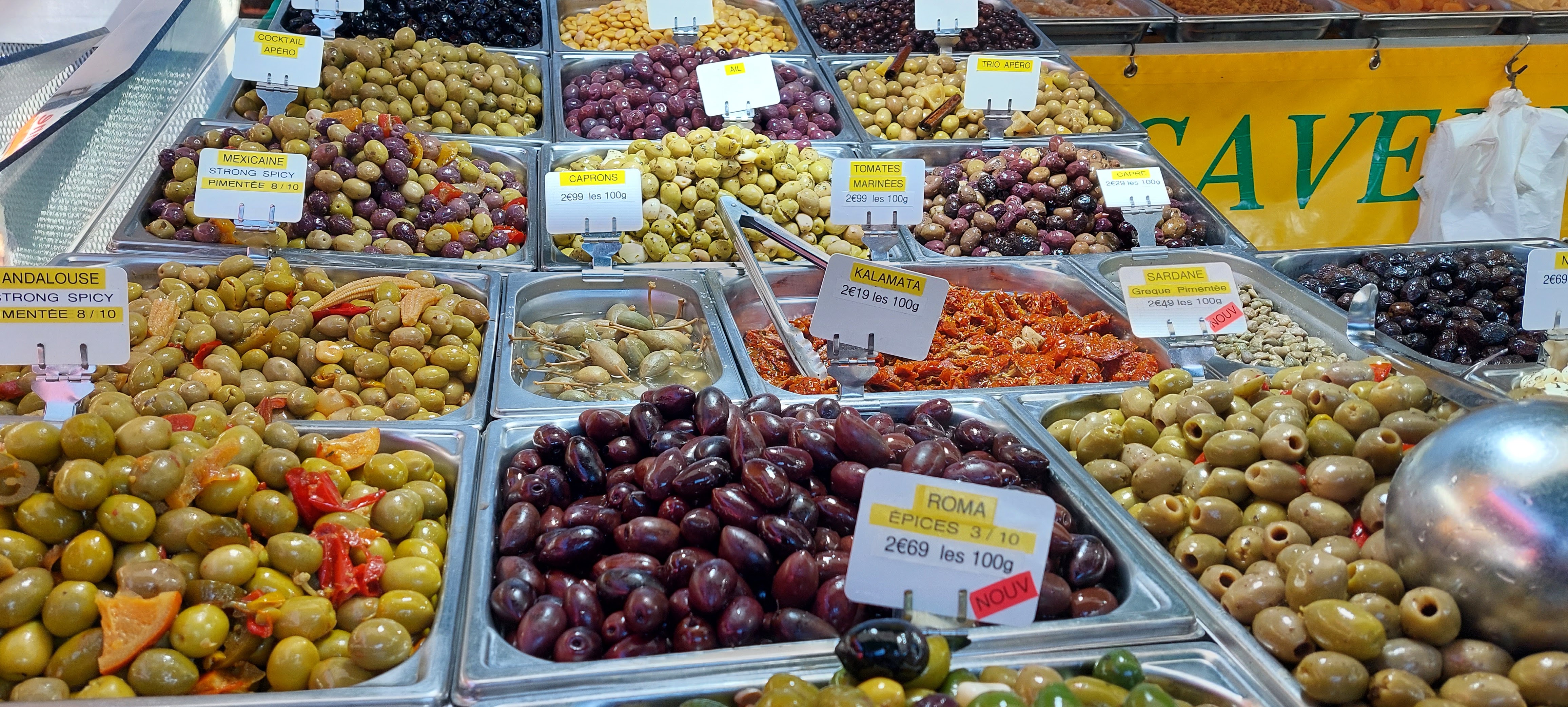Énormément de choix pour les crustacés et les poissons, mais pas que ,on trouve du bon fromage, des olives ,des saucissons des légumes, et même des nems...