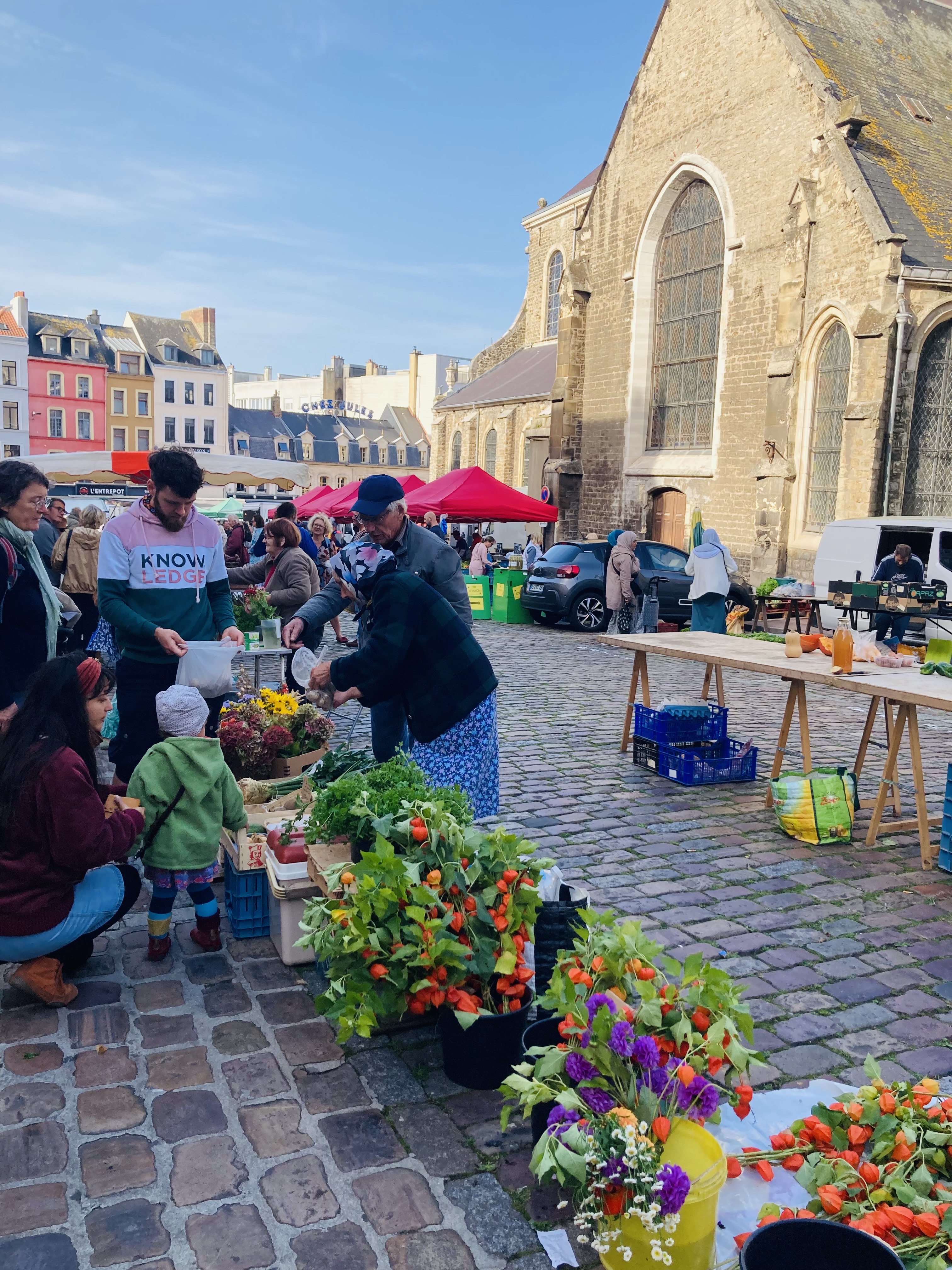 Lieu convivial de Boulogne-sur-Mer pour faire son plein de légumes et fruits le samedi matin. Agriculteurs, marchands de fruits/légumes et fleurs.
